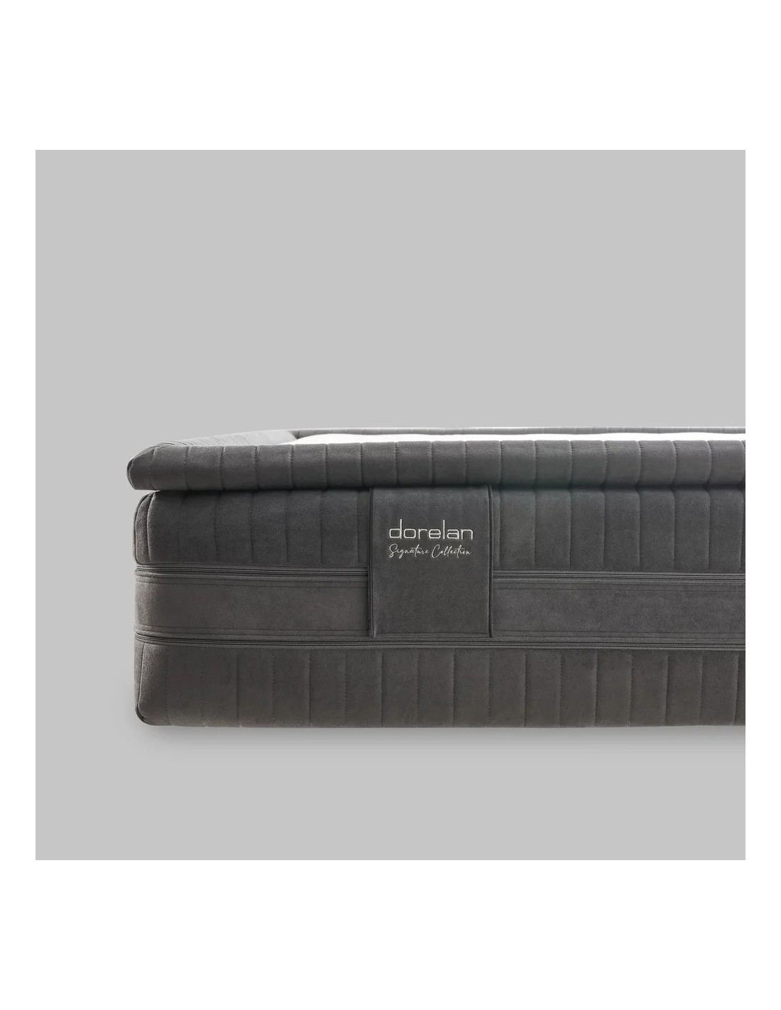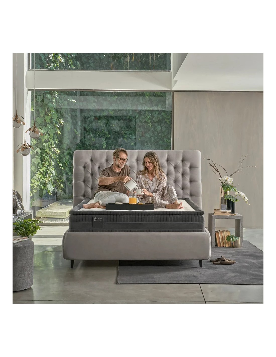 La fodera Signature Comfort Suite è la massima espressione di raffinatezza e comfort. Il Comfort Suite superiore combina un’elevata imbottitura in Seta, Cotone, Ingeo e Myform Air con uno strato addizionale in Myform Air, per un effetto abbraccio continuo. La trapuntatura Capitonné Decor crea volumi generosi e una presenza scenografica che esalta la qualità percepita sul punto vendita. La fascia in velluto Dark Grey completa un’estetica di lusso. Completamente sfoderabile e lavabile con sistema ZipFit, è pensata per chi cerca il meglio in ogni dettaglio del proprio riposo.