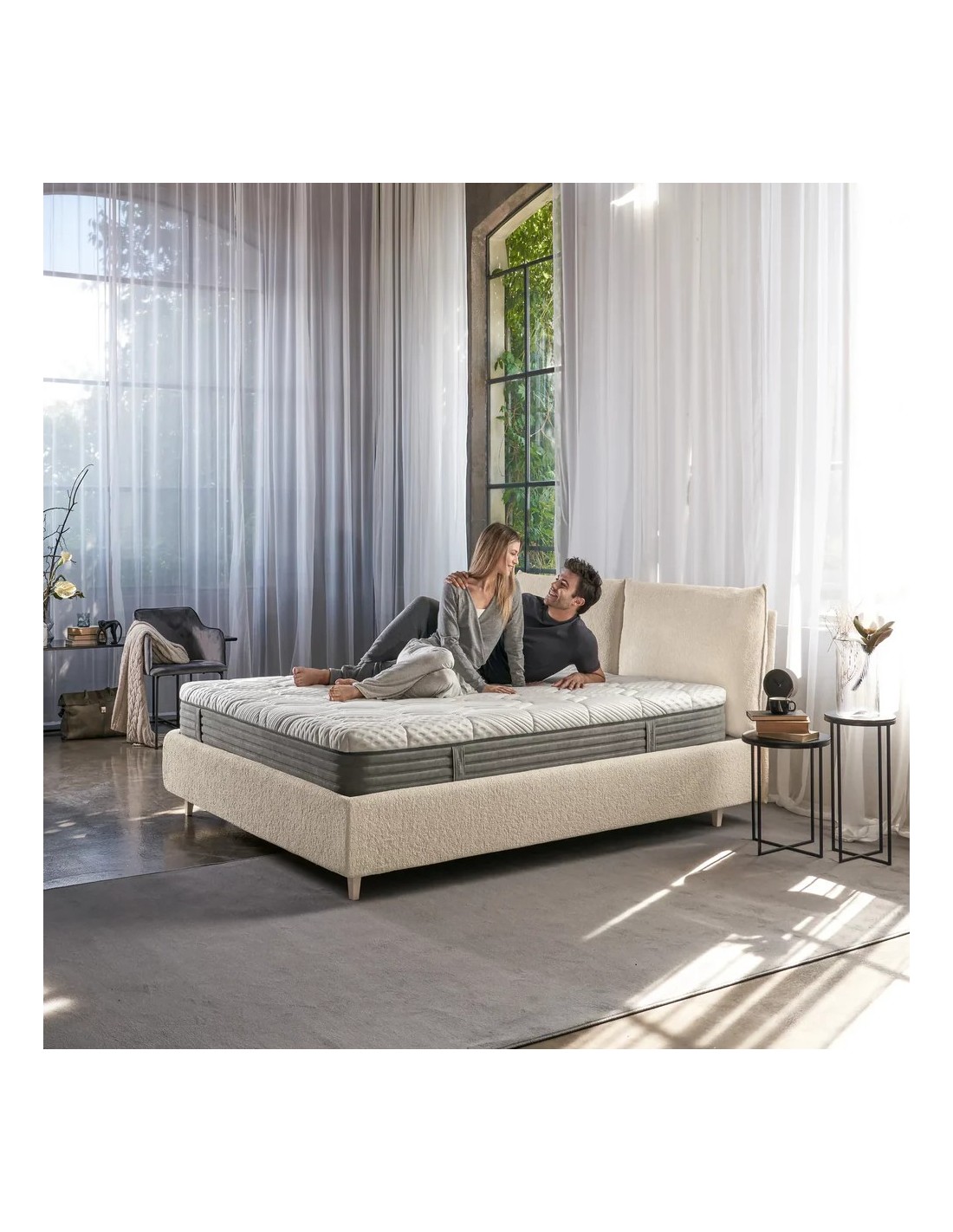 Un comfort profondo, su misura. Pensato per offrire il massimo comfort, Evoke unisce tecnologia evoluta e materiali naturali. Il rivestimento in viscosa dona morbidezza al tatto, mentre l'imbottitura in bamboo garantisce freschezza costante. Fibersan assicura un ambiente protetto e igienico, CoolPhase regola il microclima per un benessere continuo. Lo spessore maggiorato di Myform Memory Air Clima equilibra accoglienza e freschezza, mentre il Myform Memory Air HD accoglie il corpo con un sostegno ergonomico profondo. Myform Extension completa il sistema offrendo elasticità e stabilità. Evoke, il comfort profondo che accompagna il corpo in ogni fase del riposo.