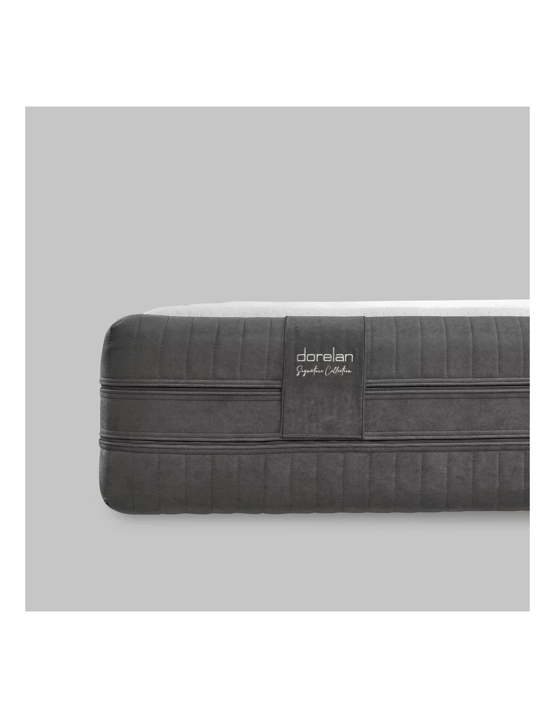 La fodera Signature rappresenta l’essenza del lusso sartoriale Dorelan. Il tessuto elasticizzato ultra-soft accoglie il corpo con una carezza delicata, mentre l’imbottitura in Seta, Cotone, Ingeo e Myform Air garantisce freschezza, traspirazione e un comfort unico. La trapuntatura Capitonné Decor aggiunge profondità estetica e un volume materico che rafforza la percezione di morbidezza e pregio. La fascia in velluto Dark Grey completa il design con eleganza. Interamente sfoderabile e lavabile, è dedicata a chi desidera il massimo in ogni dettaglio.