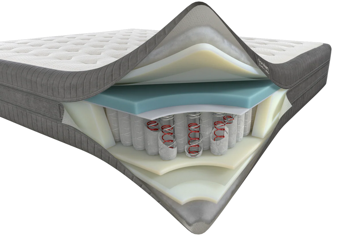 Ergonomia reattiva, accoglienza millimetrica e supporto profondo, con ventilazione continua. La sinergia perfetta tra molle e Memory per un riposo rigenerante e altamente personalizzato.