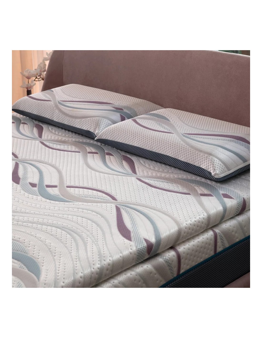 Tessuto CRIOsense con struttura tridimensionale e microforature tecniche, progettato per offrire freschezza immediata e traspirazione potenziata durante tutta la notte.