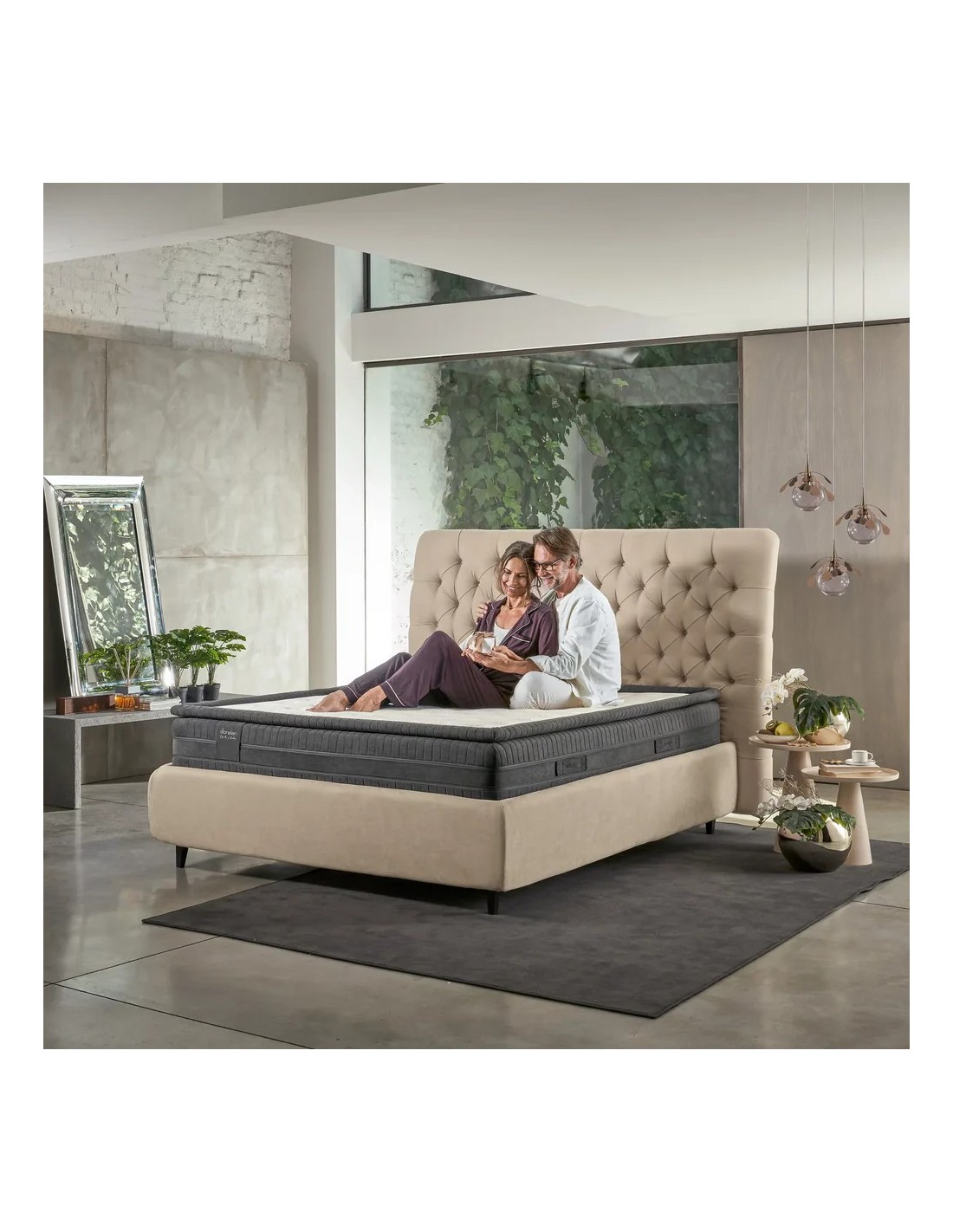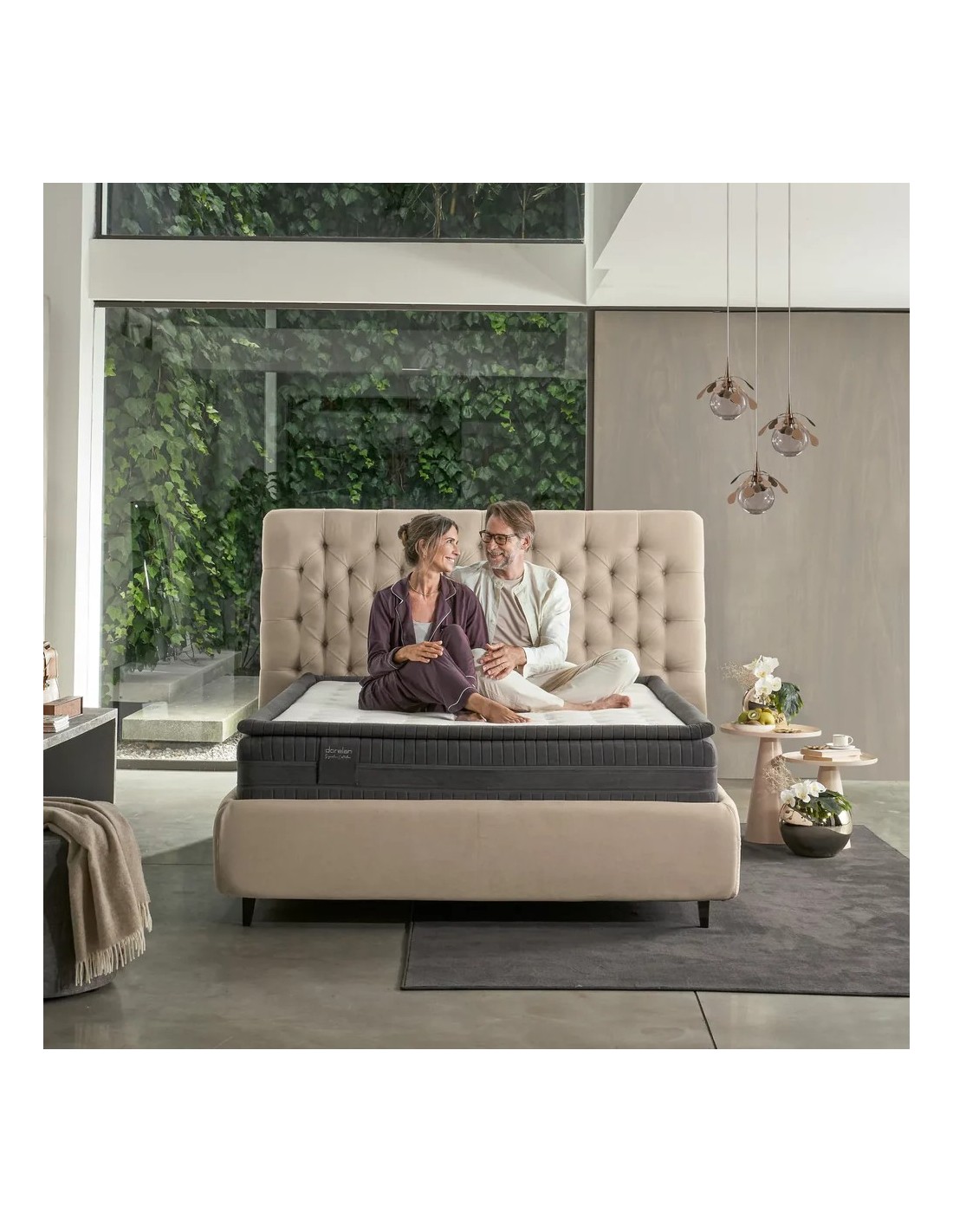 La fodera Signature Comfort Suite è la massima espressione di raffinatezza e comfort. Il Comfort Suite superiore combina un’elevata imbottitura in Seta, Cotone, Ingeo e Myform Air con uno strato addizionale in Myform Air, per un effetto abbraccio continuo. La trapuntatura Capitonné Decor crea volumi generosi e una presenza scenografica che esalta la qualità percepita sul punto vendita. La fascia in velluto Dark Grey completa un’estetica di lusso. Completamente sfoderabile e lavabile con sistema ZipFit, è pensata per chi cerca il meglio in ogni dettaglio del proprio riposo.