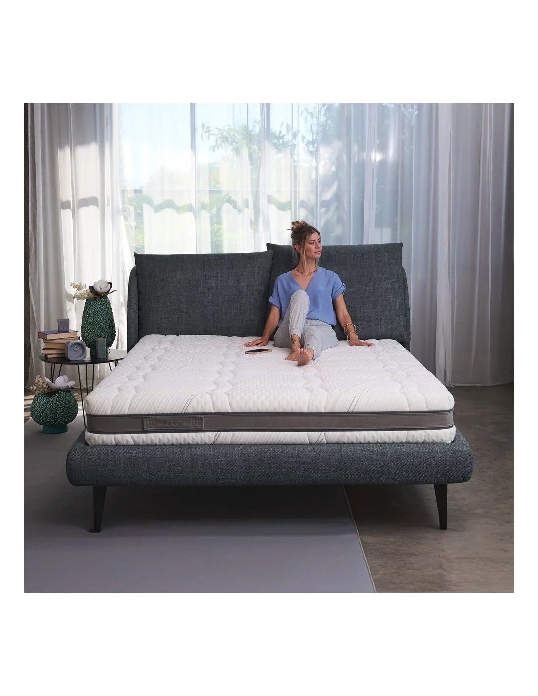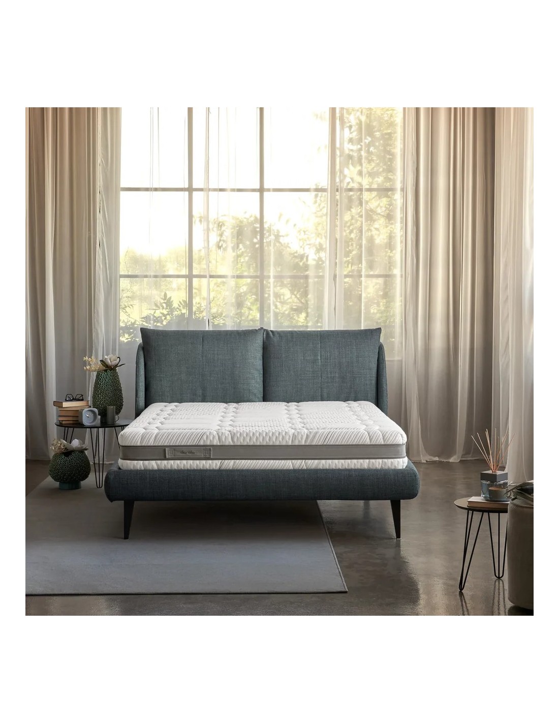 Un comfort dinamico che segue ogni movimento con fluidità. Il molleggio AI-daptive lavora per offrire un sostegno personalizzato, rispondendo in tempo reale ai cambiamenti posturali. Il rivestimento in viscosa coniuga eleganza e funzionalità, mentre l'imbottitura in Myform Memory Air Clima favorisce un microclima equilibrato. Fibersan protegge da acari e allergeni, CoolPhase ottimizza la gestione della temperatura. AI-daptive interagisce con lo strato FisioMassage, offrendo un’accoglienza dinamica che accompagna i movimenti. Sul lato estivo, l’imbottitura in bamboo assicura freschezza e traspirazione costante. Regal, il supporto intelligente che accompagna il corpo con naturalezza.